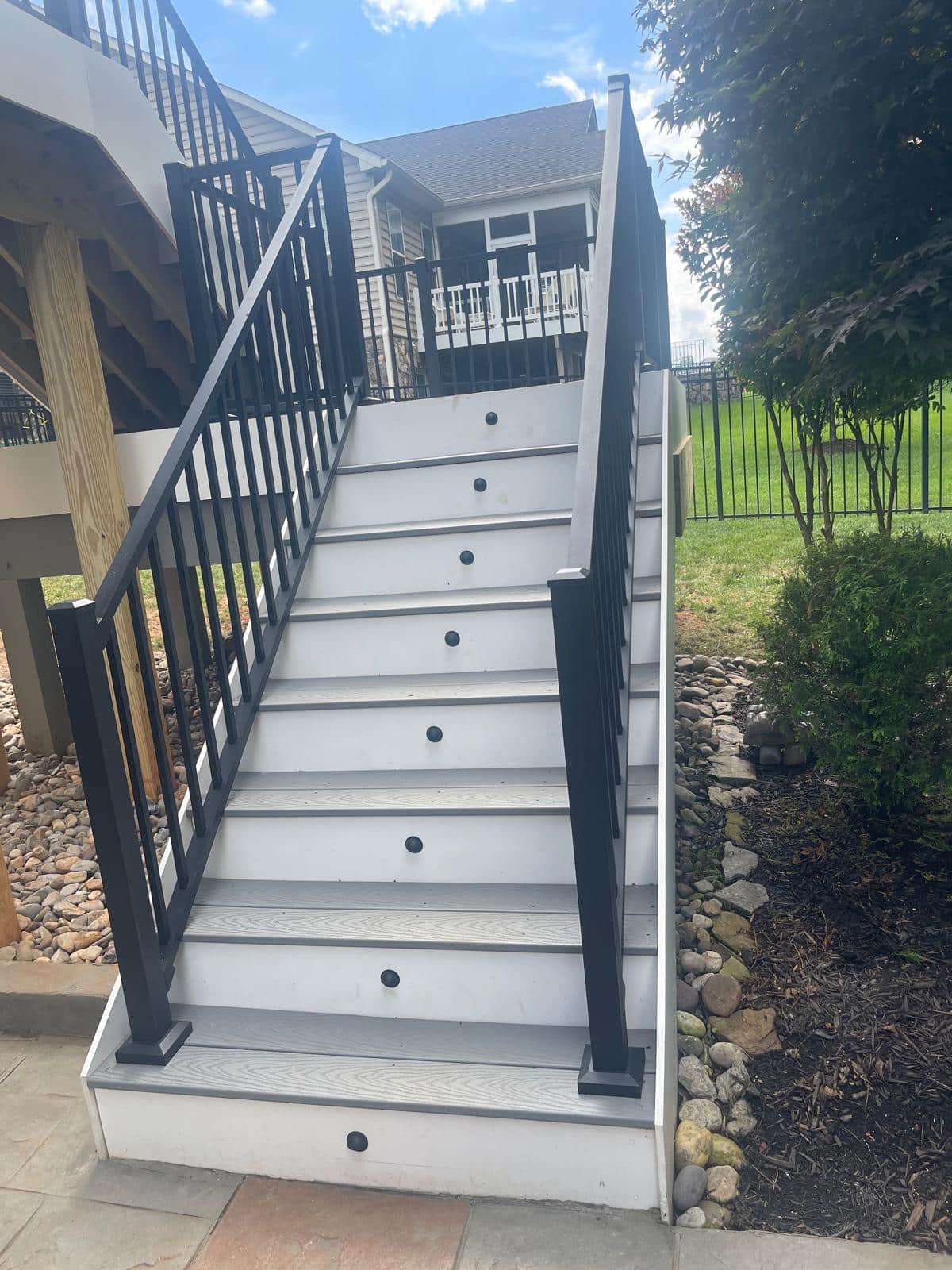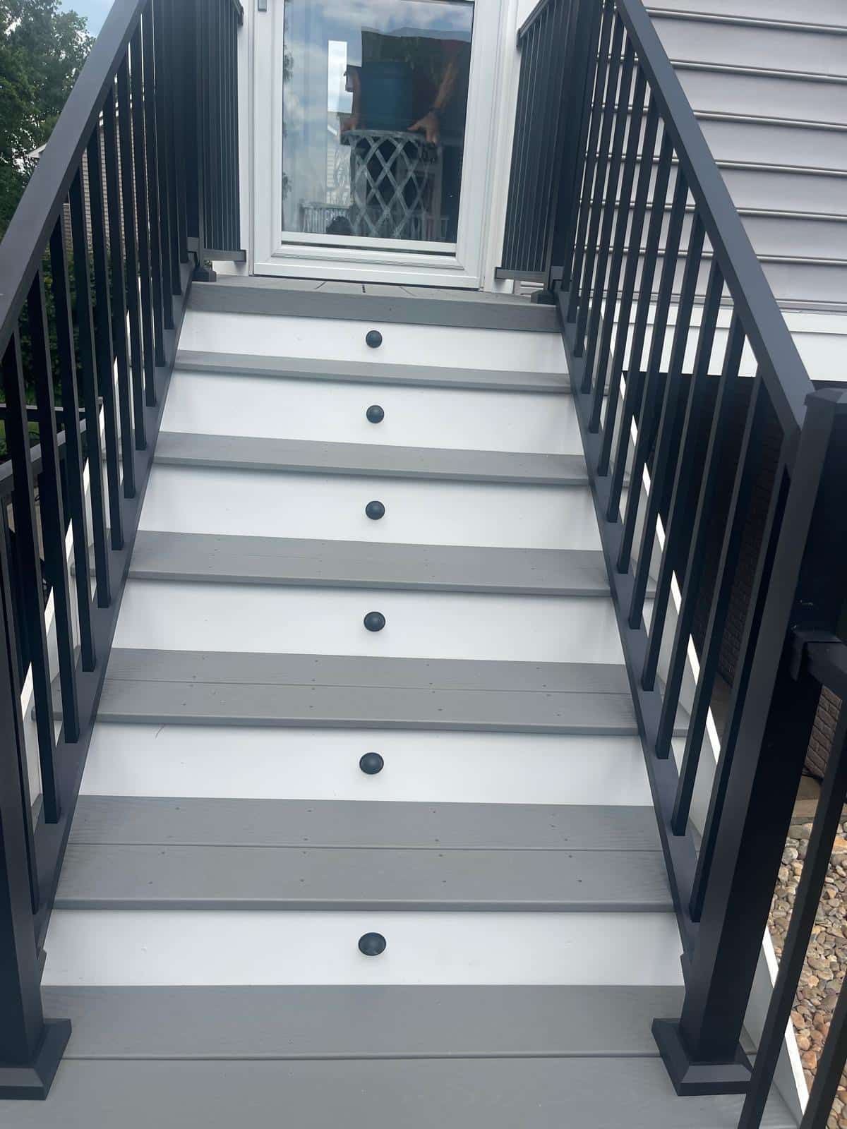 High-End Material: Used Trex composite decking across all surfaces for durability, paired with sleek black aluminum balusters for a modern, low-maintenance railing system