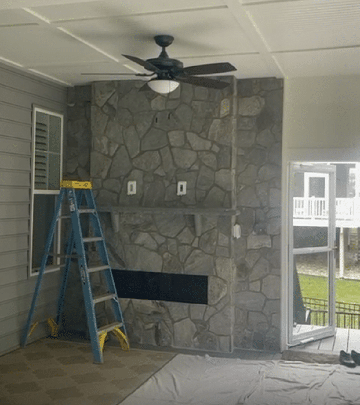 Electric Fireplace Feature: Installed burner within the porch to provide warmth and ambiance without the need for venting or firewood