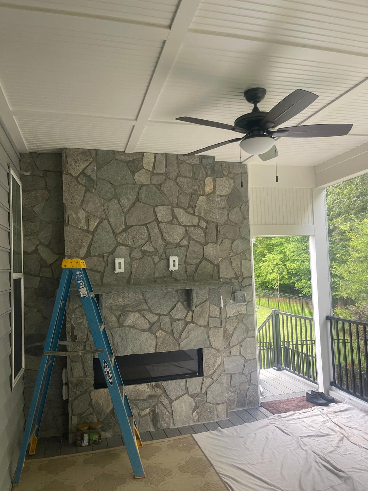 Finished Porch Interior: Created a bright, clean ceiling with maintenance-free white PVC and integrated lighting for a comfortable atmosphere day or night