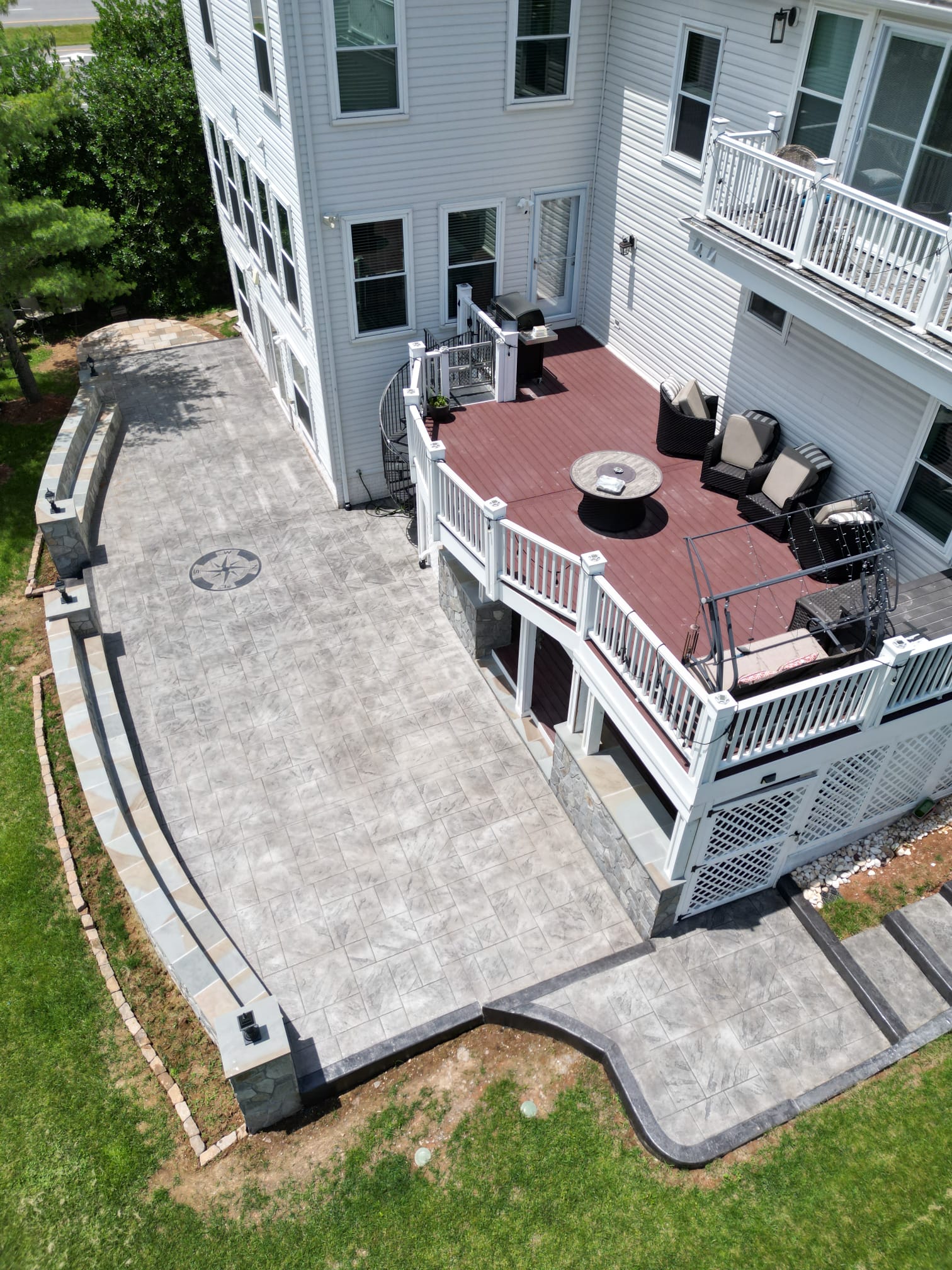 teThis was the exact situation for a recent client in Ashburn, VA, who wanted to transform their unusable yard with a significant drop-off into a functional, elegant outdoor living space. As a leading stamped concrete contractor in Ashburn, VA, Haijoe provided the perfect solution.